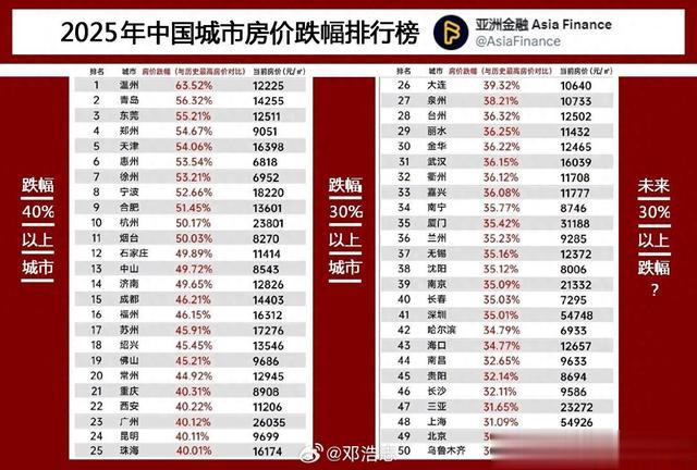 近日,亚洲金融公布了中国各城市房价跌幅排行榜的统计数据。关于房价跌幅的统计有许多,其中统计局的数据一直被诟病与实际感受相差较大。而这次的榜单相对比较接近我们在房地产工作一线的体感。